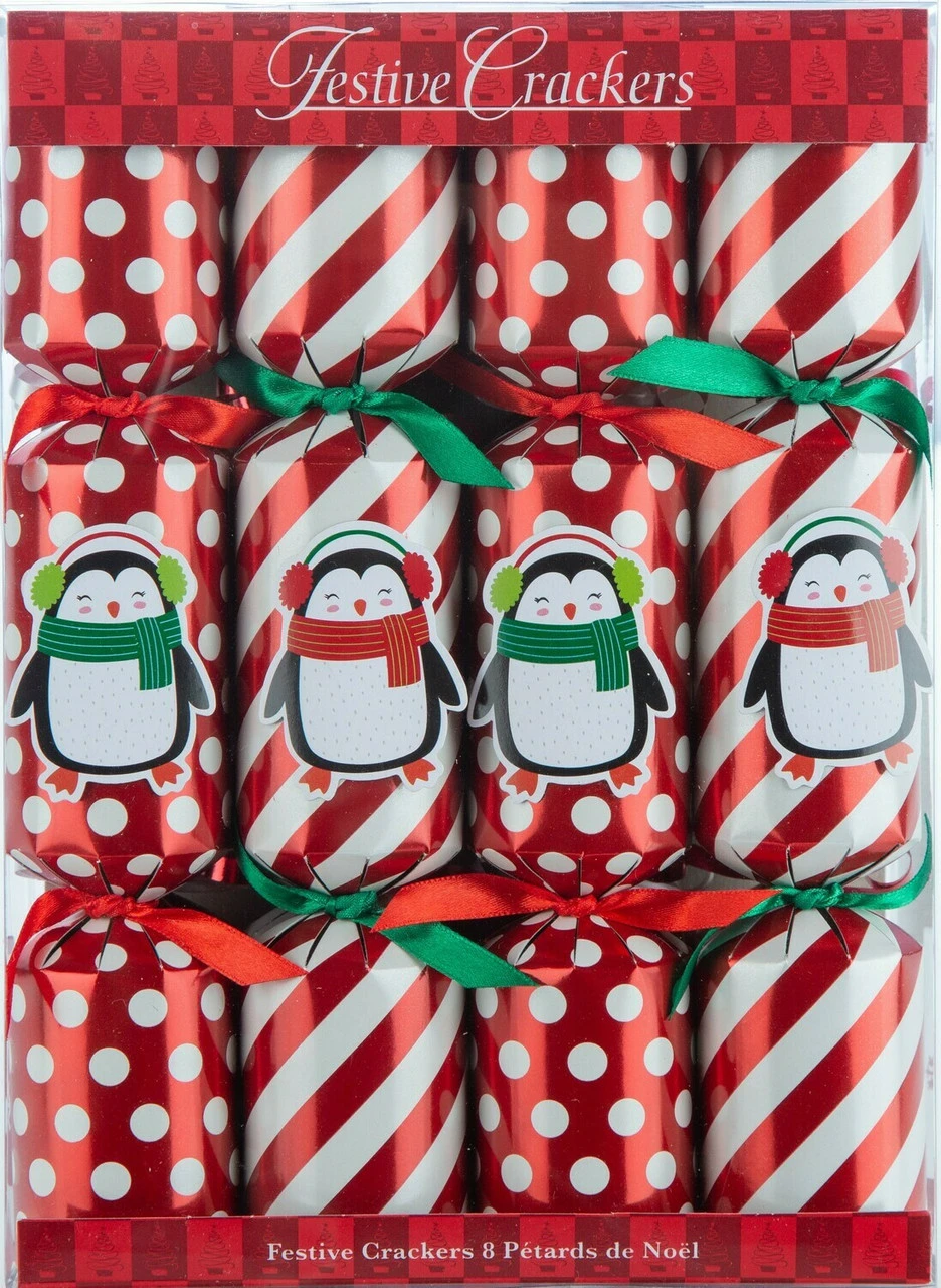 - 10″ 8ct Stripes and Dots Christmas Crackers