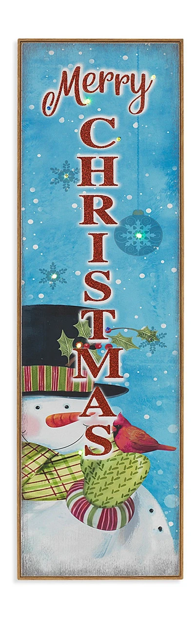 - 31.5″ Lit Wooden Porch Sign With Insignia “Merry Christmas”