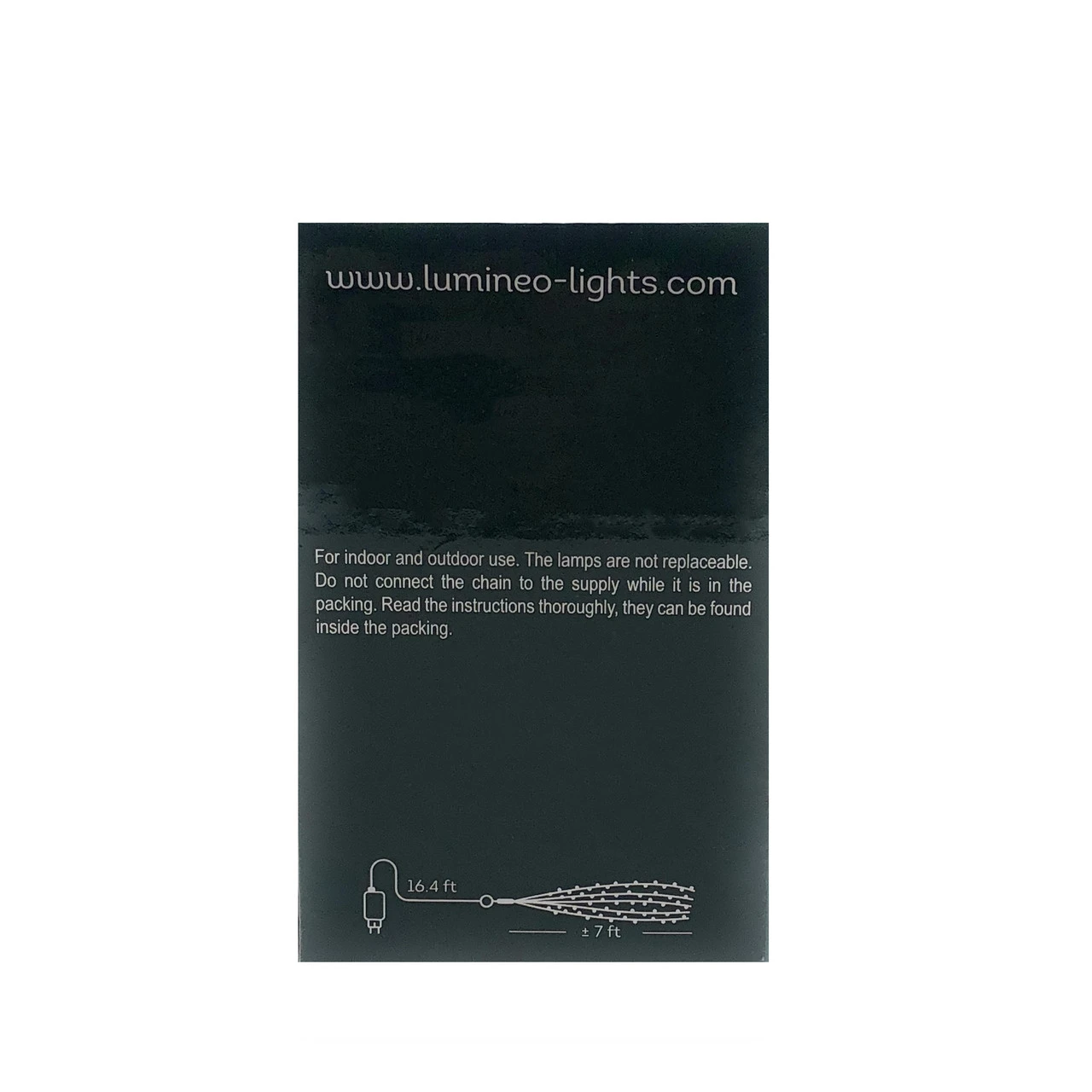 - String Length: 23.4’ (16.4’ Lead Wire, 16 – 7’ Branches of Lights)