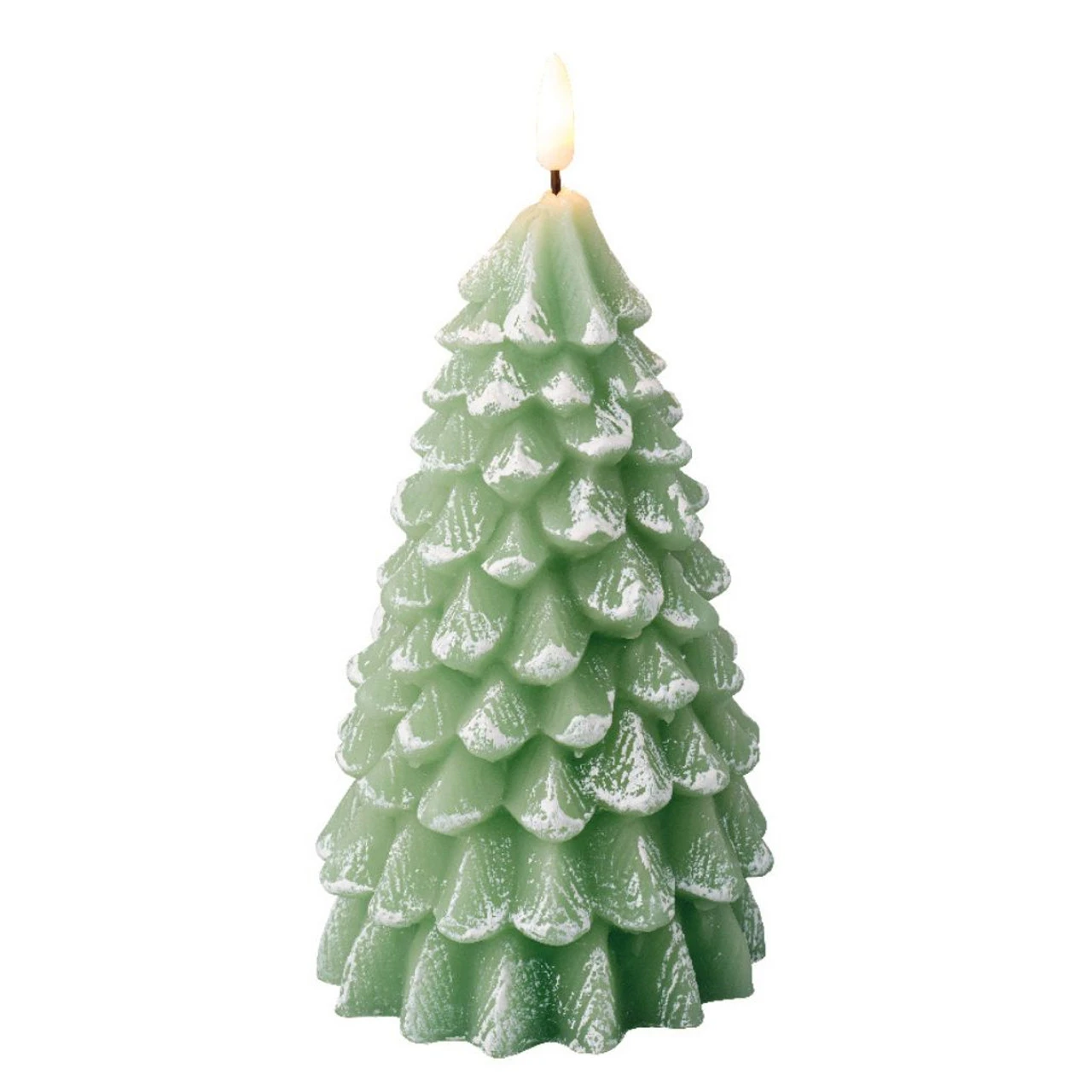 This LED snowy tree candle is a wonderful addition to any winter decor collection. Featuring real wax giving it a realistic candle look.