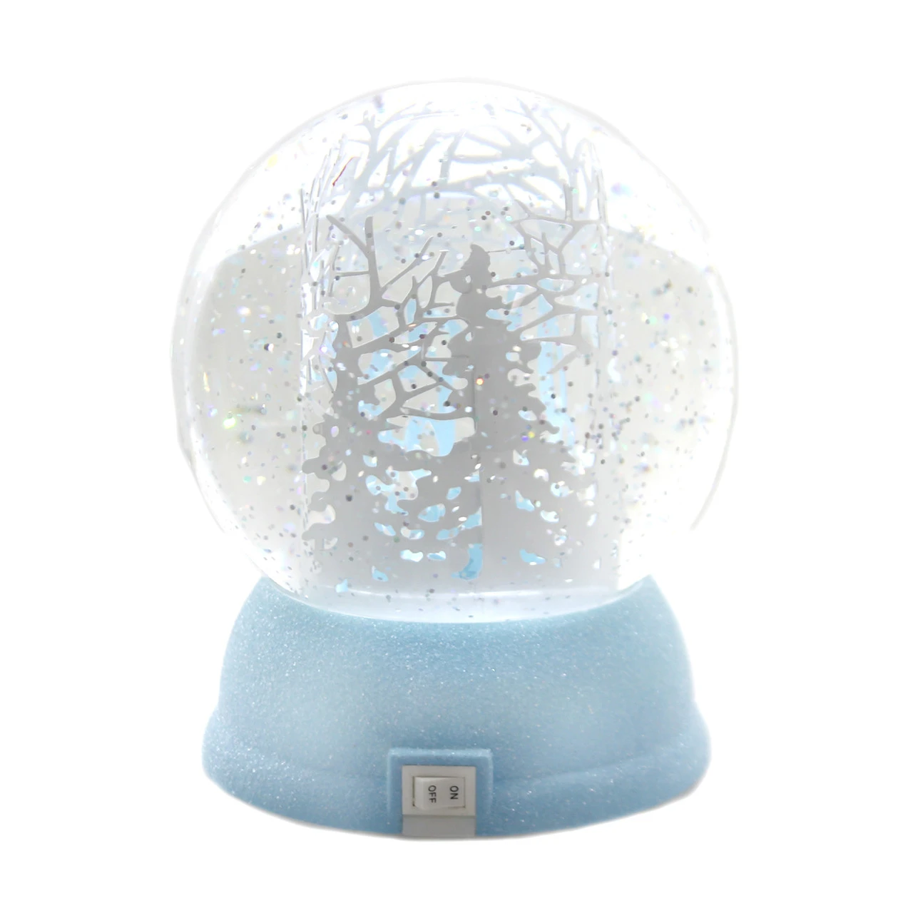 The LED “Peace Be Yours” Glitter Snow Globe brings a sense wonderment to your holiday display. The light blue base supports the glass dome filled with water and a serene winter forest scene. Beautiful glitter and snow swirl around the trees when shaken.