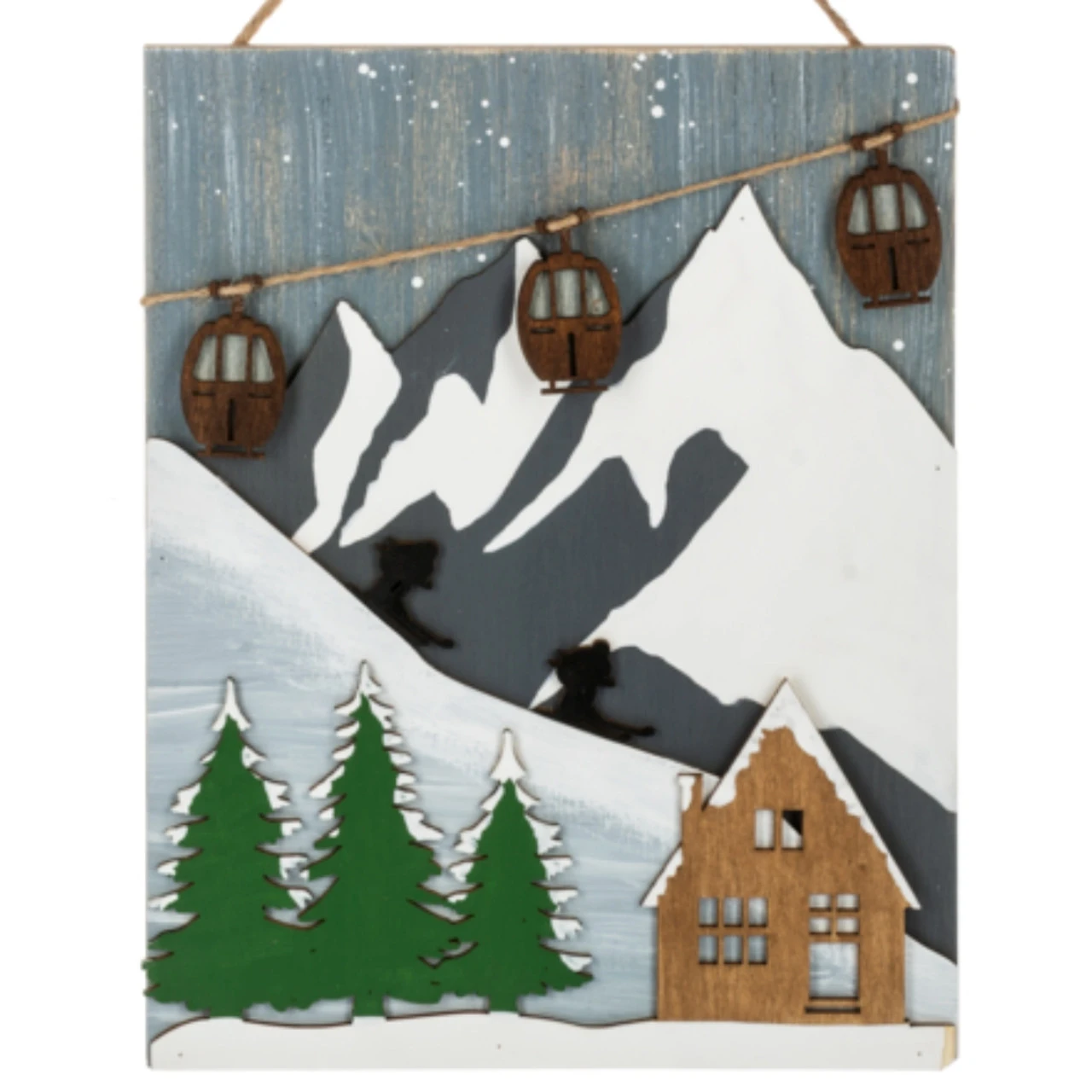Introducing our stunning 12-inch Ski Lodge Lasercut Layered Wall Plaques! These exquisite plaques showcase a charming winter lodge with scenic ski slopes in the background. Hang them effortlessly from the sturdy brown string provided to elevate your space with rustic mountain charm. Crafted with precision and intricate details, these layered plaques are true works of art. The 12-inch size makes them perfect for making a statement on any wall or as a focal point in your ski lodge decor. Made with high-quality materials, these plaques are designed to last for seasons to come. Bring the beauty of the slopes indoors with our Ski Lodge Lasercut Layered Wall Plaques. Order yours today and transform your home into a cozy winter retreat!