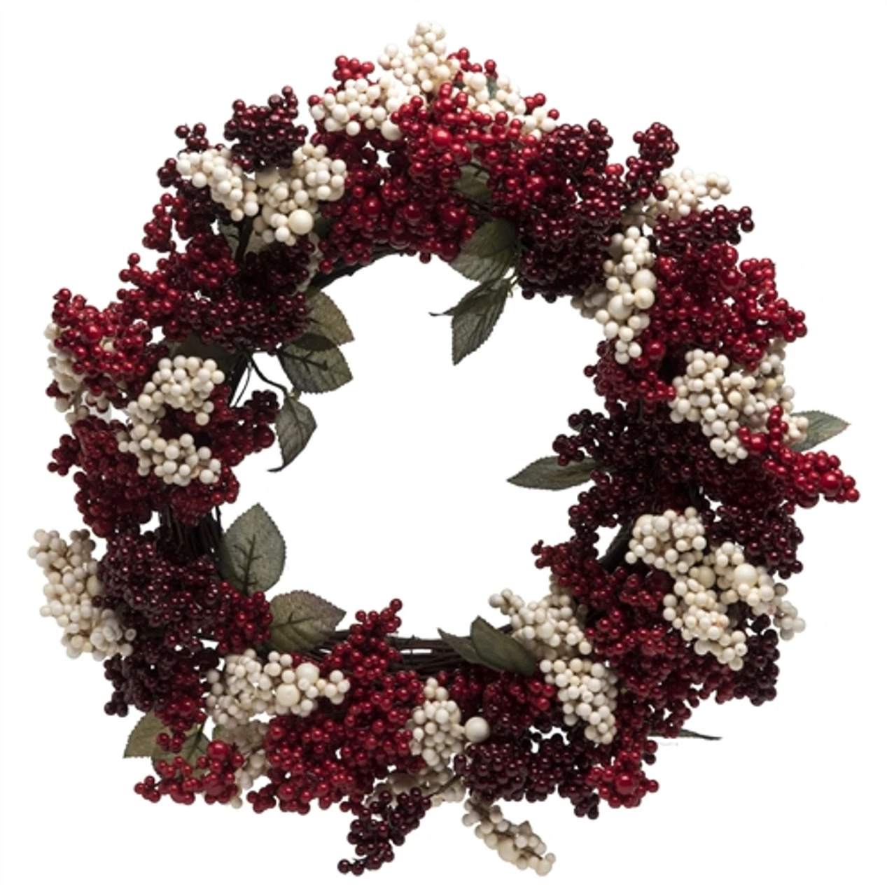 Create a warm, festive winter holiday home with this White & Red Berry Wreath. Whether you hang it on your door, or use it as a tabletop decoration, this wreath features plump red and white berries, with green foliage, that will add just the right amount of color to your holiday dΓ©cor.